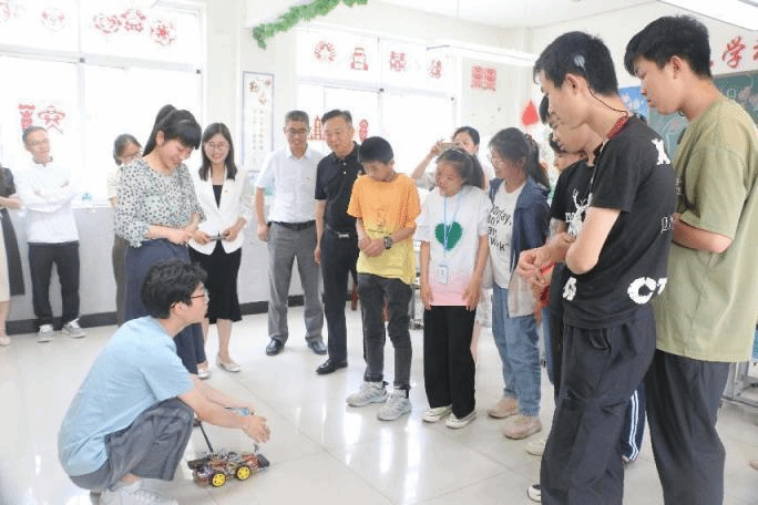 2024年5月31日下午3点,宿州学院机电学院党委书记杨杰带领自动化教研室教师党支部师生走进宿州市特殊教育中心开展“科技助残”活动。此次活动旨在通过科技与教育的结合,为特殊教育学生提供更多元化、个性化的学习机会,帮助他们更好地融入社会。
