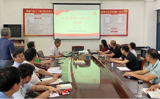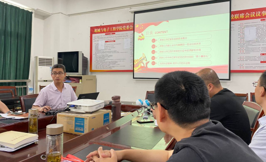 2021年06月27日下午在机械与电子工程学院302会议室,机电学院党委副书记杨杰为自动化教研室教师党支部上主题党课“弘扬伟大长征精神,走好今天的长征路”。