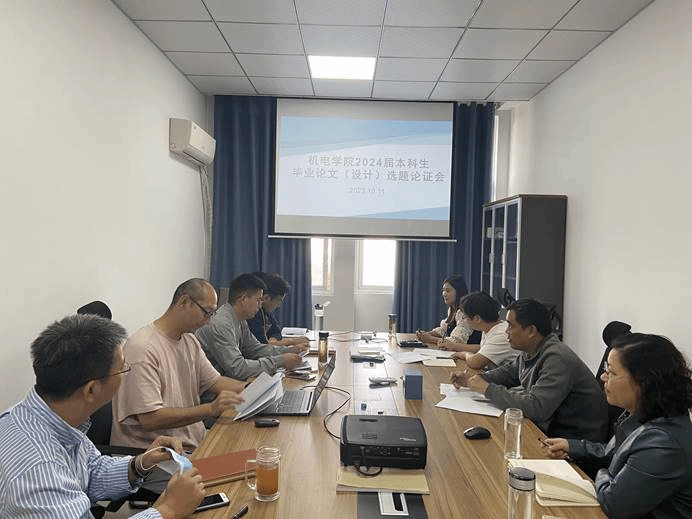 2023年10月11日,机械与电子工程学院召开2024届本科生毕业论文(设计)选题论证会。毕业论文(设计)工作领导小组及各教研室主任参加此次论证会,会议由朱光院长主持。