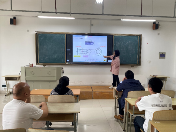 沈倩倩老师以自己所带的《机械制图》课程给大家展示了一堂教学观摩课,从课程PPT的设计到机械结构图的作图步骤、授课例题选取和课堂互动方式等进行了全面讲解。最后,教研室各位老师从课程建设、讲课方法、课堂教学案例、课程指引以及课后拓展等方面进行了深入的交流和探讨。