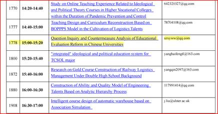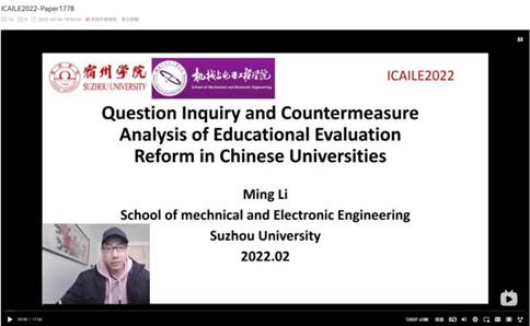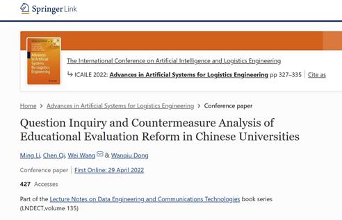 2022年2月20-22日,2022第二届人工智能与物流工程国际会议(The Second International Conference on Artificial Intelligence and Logistics Engineering, ICAILE2022)因疫情原因线上召开。我院教师李明、王巍、董婉秋及19电信1班学生戚晨同学共同撰写的论文“Question Inquiry and Countermeasure Analysis of Education Evaluation Reform in Chinese Universities”(EI检索)在本次会议发表,李明老师受邀在会上做相关内容的学术报告,报告时间为2022年2月21日15:00-15:20,王巍、董婉秋老师及19电信1班戚晨、高王龙、郑冲、高枫等同学参加了线上会议。