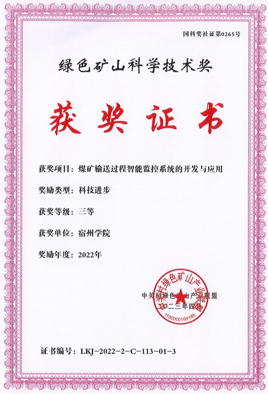 近日,安徽省科学技术厅与中关村绿色矿山产业联盟先后公布了“2022年度安徽省科学技术奖专业(学科)”和“2022年度绿色矿山科学技术奖”评审结果。机械与电子工程学院刘从虎教授作为第一完成人主持的“不确定环境下再制造装配质量控制机制及关键技术”项目获得“安徽省科学技术进步奖三等奖”;朱光教授作为第一完成人宿州学院第一单位主持的“煤矿输送过程智能监控系统的开发与应用”项目获“2022年度绿色矿山科学技术三等奖”。