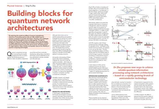 近日,英国著名科普杂志Research Features对机电学院朱行宇博士在量子网络架构方面的最新研究进展进行题为《Building Blocks for Quantum Network Architectures》的报道。Research Features是英国著名科普杂志,一直致力于将基础的应用型科学研究生动形象地传递给全球读者,普及更多的科学文献知识,目前在全球拥有800万常规读者。