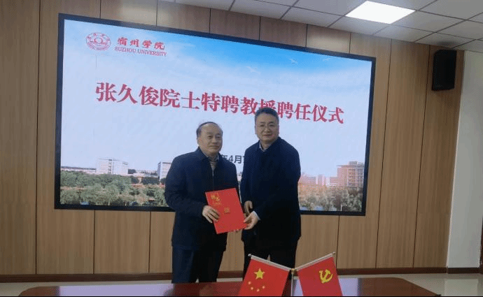 张久俊院士对宿州学院的信任和聘任表示衷心的感谢,他介绍了自己的学术发展经历,表示十分期待与我校的合作,希望在接下来的合作中充分发挥多年积累的科研工作经验,为学校学科建设、科研团队建设、青年人才培养等作出贡献,助力学校高质量发展。