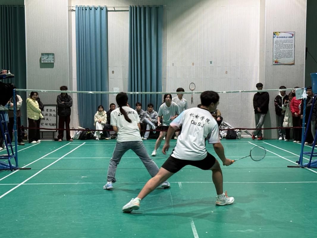 男双对决中,我院搭档配合默契,前场封网密不透风,后场扣杀势如破竹,攻守转换行云流水,凭借紧密的协作牢牢掌控比赛节奏;混双赛场上,选手们刚柔并济,网前轻灵防守,后场强势进攻,默契无间的配合充分展现了混双项目的独特竞技魅力。