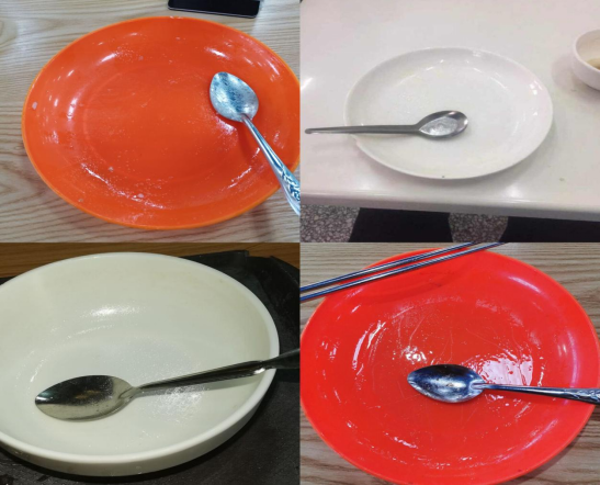 活动中,院学生会在餐桌等显眼位置粘贴“光盘行动”标语的纸片,提醒同学们意识并支持身边存在的光盘精神,了解“光盘”的重要性,要时刻注意吃多少要