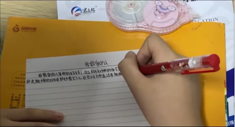 夏日炎炎,青春之火悄然绽放。团队成员也已经融入到了留守儿童这个特殊群体。活动的最后,在团队成员的研究交流和工作人员的帮助下开展了创意写作这个活动,希望孩子们能认识到爱他们的人。在实践开展过程中,要求每个孩子们写一篇作文《最爱的人》,限时30分钟。但在此期间,每一位孩子都非常认真,用自己的笔一笔一画的书写着自己感受到爱的那一刻,书写着自己懵懂而又稚嫩的爱。用自己的小手传递着爱的温暖。