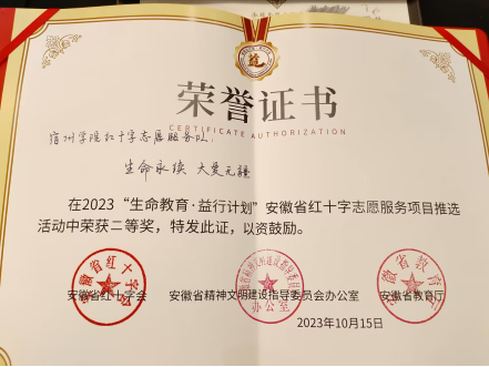 宿州学院红十字三献志愿服务队自成立以来,在校团委的指导下深入校园、社区、乡镇、献血点等场所,开展无偿献血和造血干细胞捐献志愿服务活动,共获得省级荣誉5次,事迹被人民网、中国教育报、中国文明网、安徽新闻网、宿州直播等新闻媒体报道。