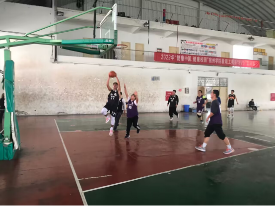 12点30分,比赛正式开始,学生篮球队凭借默契的配合和精彩的投篮,率先取得了领先优势。教职工篮球队也不甘示弱,配合默契,发挥稳定。两队队员都奋力拼搏,精妙的传球、良好的配合以及精彩的投篮,将队员们的热情和球技展现得淋漓尽致。根据场上情况及时调整战术,无论是学生队积极拼抢还是教师队的稳扎稳打都很好的体现出他们强大的身体素质和良好的竞技状态。同时现场球员也发扬了“师生情谊第一,比赛输赢第二”的原则,充分展示双方篮球队员的实力;师生们同场竞技,娴熟的技术和精湛的球技演绎出一次次精彩瞬间。拉起对方倒地球员、暖心握手致意、赛后合影留念等温情瞬间,既赛出水平,亦赛出风格,更赛出温情。