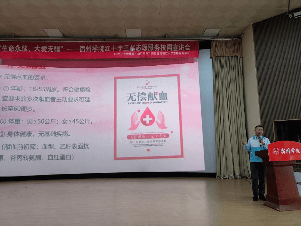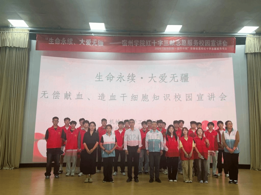 为进一步弘扬“人道、博爱、奉献”的红十字精神,10月15日,机电学院、宿州学院红十字三献志愿服务队联合宿州市红十字会志愿服务队,开展“生命永续·大爱无疆”——无偿献血和造血干细胞捐献知识宣讲活动。我校400余名师生参加了活动。