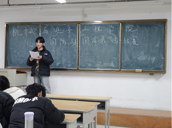 2024 年 11 月 29 日晚,一场以“心系国防,强国有我”为主题的演讲选拔赛在机械与电子工程学院准时拉开序幕。当晚七点,来自不同专业的选手们齐聚一堂,用他们的激情和智慧,展开了一场关于国防意识的精彩演讲。