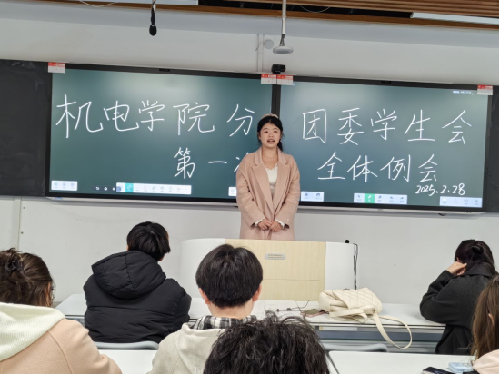 为推动院学生会组织工作高质量发展,深化新学期学生干部队伍建设,2025年2月28日晚18:20,机械与电子工程学院分团委学生会第一次全体例会在实训楼A315顺利召开。分团委学生会全体成员共同参与此次会议。