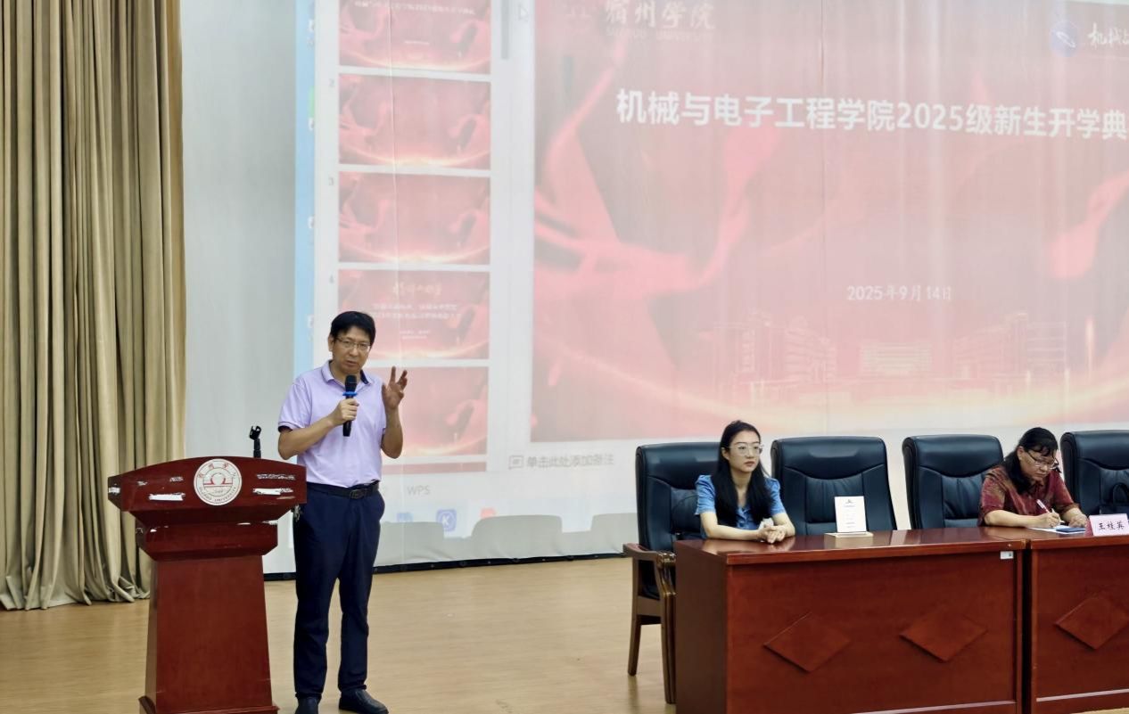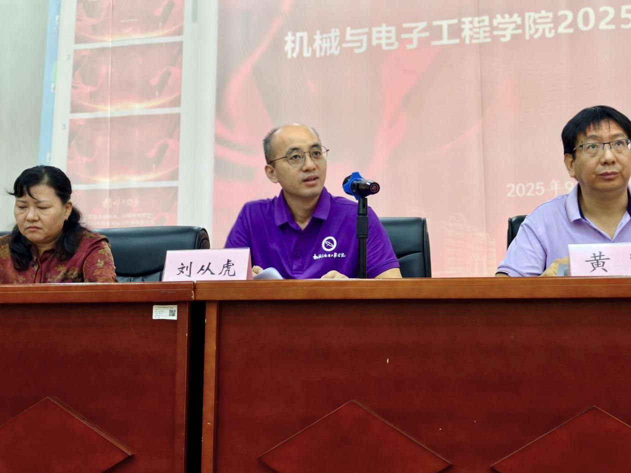 紧接着,机械与电子工程学院党委负责人以“全面发展,砥砺前行”为主题发表讲话,与同学们的分享中,他结合自身经验与学院人才培养理念,从学习、实践、品德等多方面为新生提出成长建议,激励大家在大学期间不断提升自我,勇担时代使命。