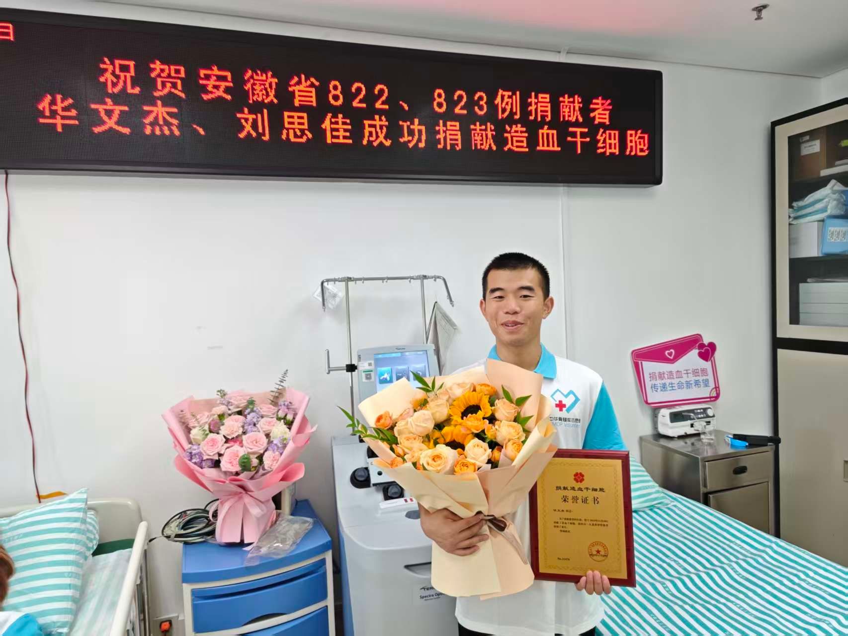 华文杰是宿州学院2018级通信工程专业学生,现役军人。2018年10月在宿州学院组织的校园无偿献血活动中采集血样加入中华骨髓库。“第一次配型成功是在学校,和高昊几乎同时接到通知,高分检测都通过了,但体检时因身体指标小问题未能完成捐献。”华文杰回忆道。毕业后,他几次初配成功,却因患者原因未能进入后续流程。当命运的召唤再次来临,他毫不犹豫地回应,克服困难,协调时间,最终顺利完成了这场迟来却更加珍贵的生命馈赠。“不用害怕,也无需顾虑,能够搭起生命桥梁,是超有意义的人生体验。愿每一份善意都能抵达,愿小朋友能够早日康复!”华文杰在捐献后说。
