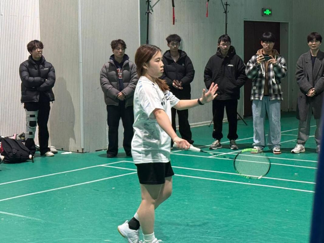 男双对决中,我院搭档配合默契,前场封网密不透风,后场扣杀势如破竹,攻守转换行云流水,凭借紧密的协作牢牢掌控比赛节奏;混双赛场上,选手们刚柔并济,网前轻灵防守,后场强势进攻,默契无间的配合充分展现了混双项目的独特竞技魅力。