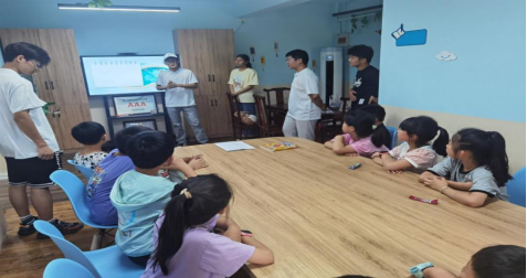 7月10日,实践团抵达了榴城镇蓝天公益社,蓝天公益社社长向实践团队成员介绍了留守儿童的相关信息和接下来开展活动的实践地点。为了增加孩子们与团队成员的熟悉感,实践队成员综合运用授课、讨论、案例分析、角色模拟等方法,寓教于乐,帮助小朋友克服害怕与人交流的缺点,提升小朋友的参与感和满足感,搭建双方心灵沟通的“桥梁”。同时,为了对当地留守儿童有了进一步的了解,团队成员集思广益,发挥所长,利用相应的理论知识为孩子们设计了不一样的暑期课程。