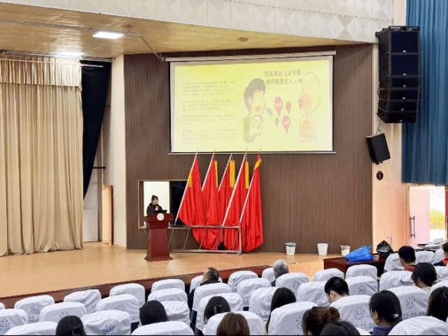 宣讲活动现场,埇桥区疾控中心副主任王小真从结核病的概念及其疫情、结核病传播的过程、结核病的表现症状、结核病易感群体、结核病的治疗预防措施等五个方面普及了结核病健康知识。她指出无论是结核病还是其他传染病,都需要在日常生活中积极做好预防工作,加强锻炼,少熬夜,保障营养吸收,不断提高自身免疫力。她还从艾滋病来源、发展、防治方法、防治成效等几方面为在座同学介绍艾滋病预防知识,号召大家保护自己,提高主动防范意识和防范能力,培养健康的生活方式。活动还现场发放了结核病及春季呼吸道传染病防治知识宣传手册。通过宣讲普及,同学们增强了防治传染性疾病传播的意识,提高了预防疾病的能力。