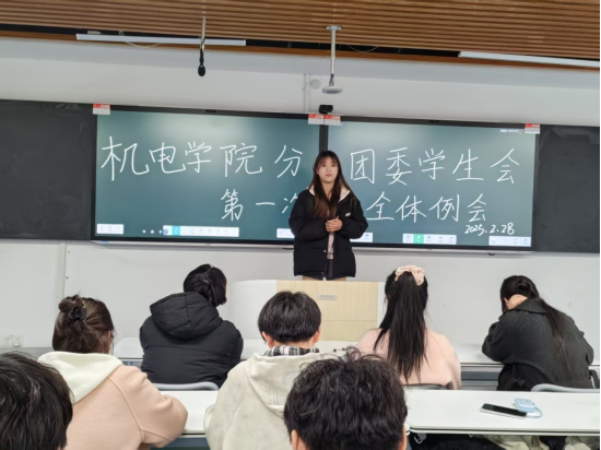 为推动院学生会组织工作高质量发展,深化新学期学生干部队伍建设,2025年2月28日晚18:20,机械与电子工程学院分团委学生会第一次全体例会在实训楼A315顺利召开。分团委学生会全体成员共同参与此次会议。