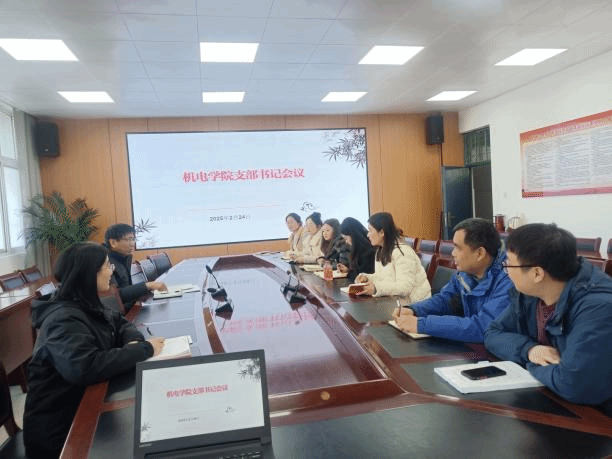 为深入推进学院“双创”建设,做好新学期支部工作,2月24日,机电学院在工C306大会议室召开支部书记会议。会议由院党委书记黄凯主持。党委副书记、纪委书记王艳、各支部书记参加了活动。